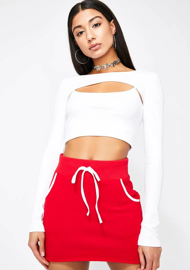 cuz ya do it for the gram. Give âem front row seats to ya baddie by nature ways in this dope AF two piece long sleeve top that has a sexxy cut out, a cropped hemline Nâ is ribbed all ova for a slim fit.