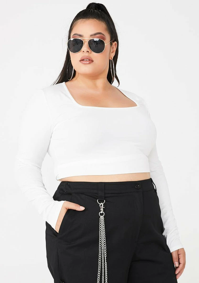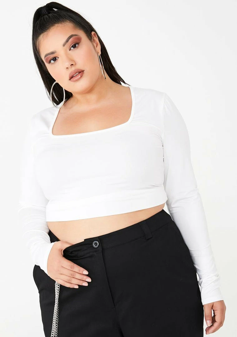 got ya askinâ for receipts, bish! Make âem spill the tea in this hot AF long sleeve top that has a wide square neckline Nâ stretchy cropped fit.