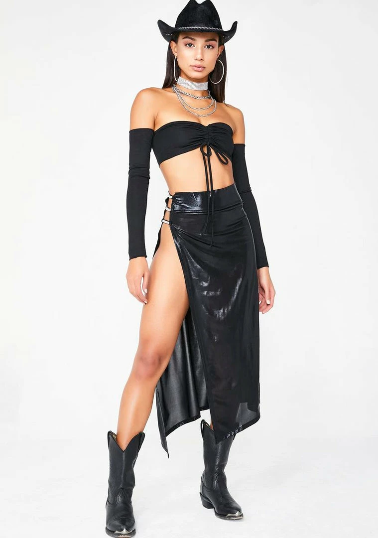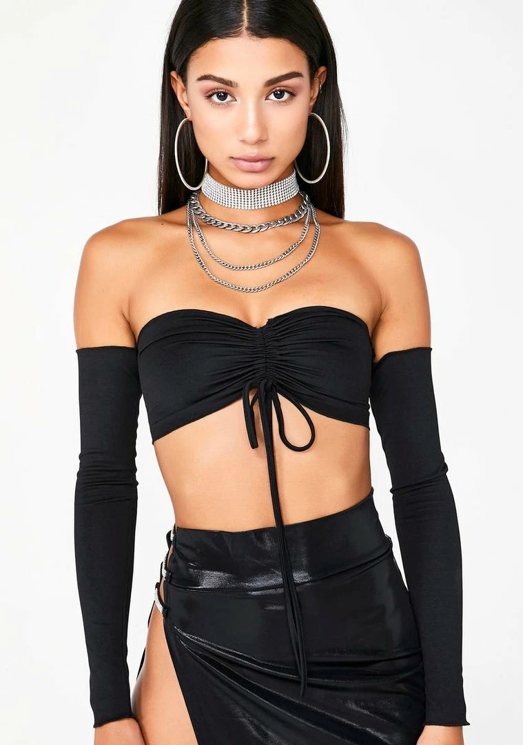 will make âem spend all their riches on ya. Youâll be breakinâ their bank in this off shoulder crop top that has a supa cropped length Nâ a ruched front detail with an adjustable tie.
