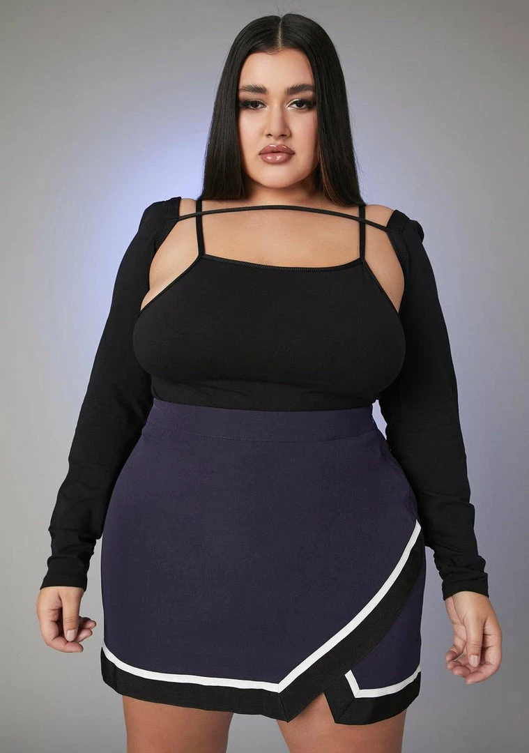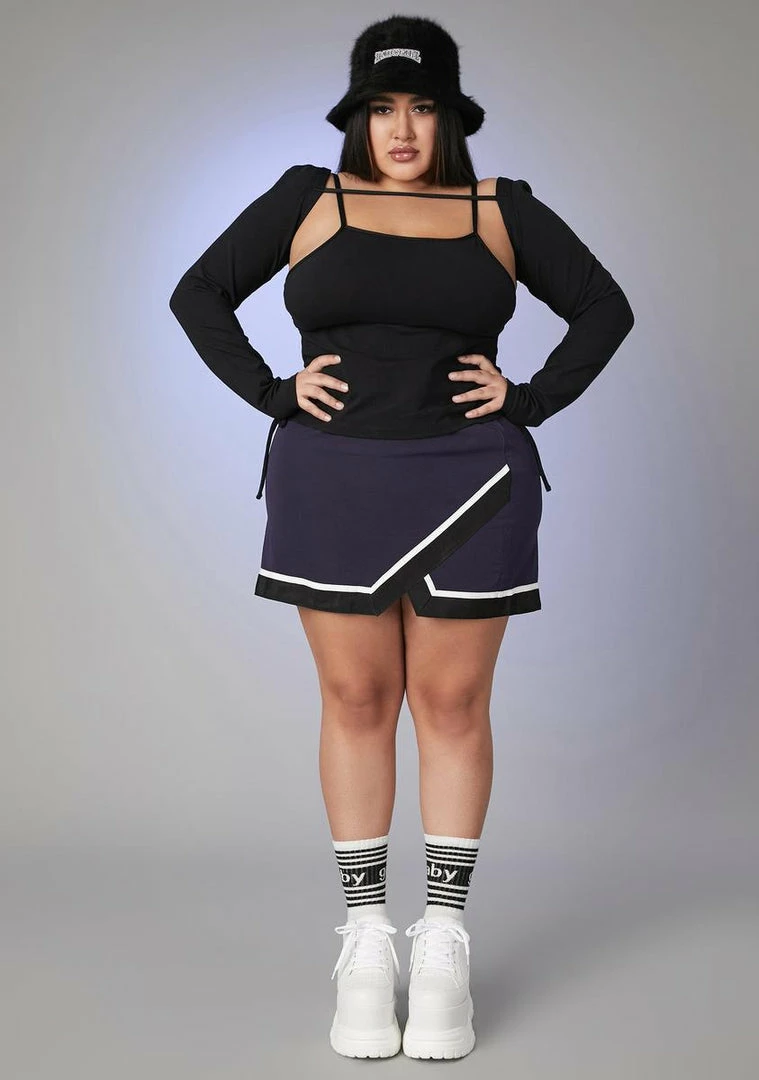because everyone follows your lead. This cheer style mini skirt has stripe detailing on the bottom, a high waist fit and a side zip closure.