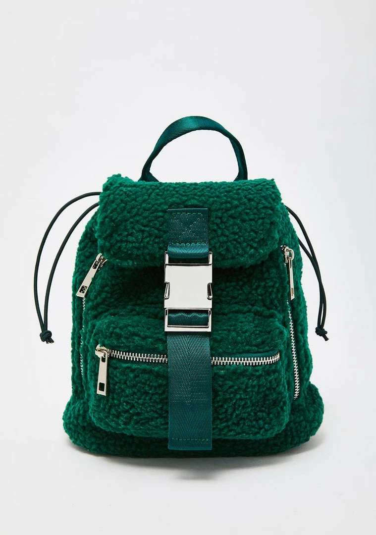 gotcha lookinâ like youâre the ish. Have âem looking up to ya in this trendy lil backpack that has a supa soft sherpa material, chrome buckle Nâ zip closures, and adjustable straps.
