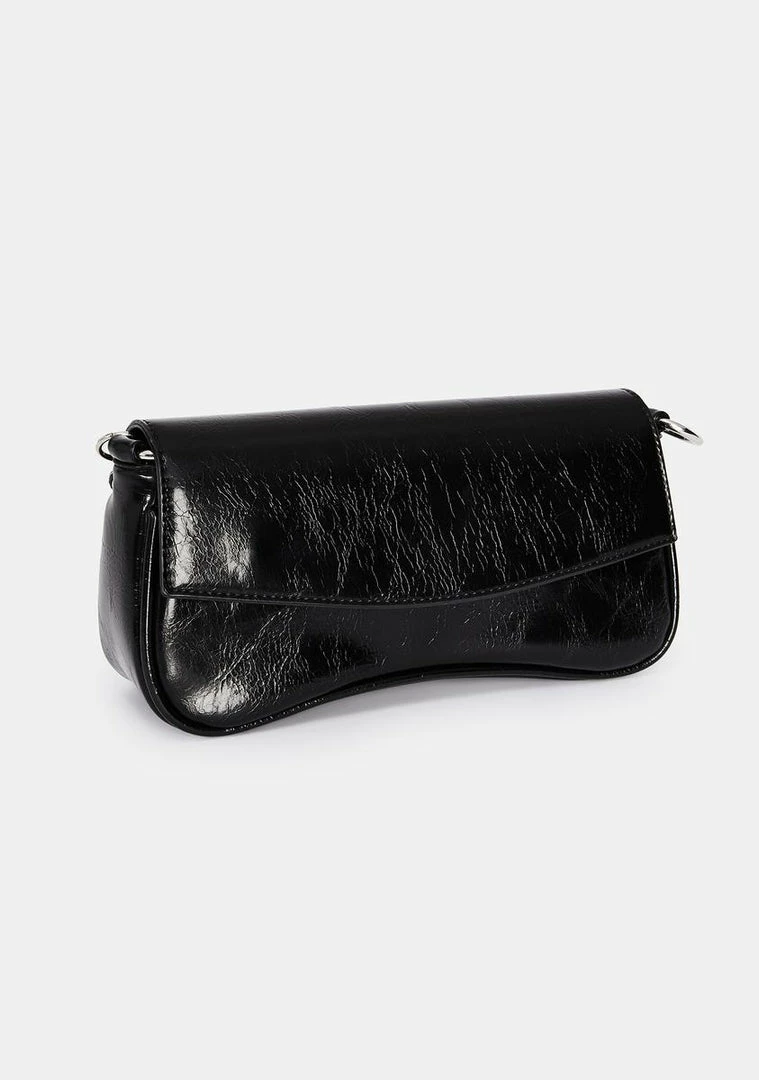 cuz you see both sides. This shoulder bag has a bike chain strap, a vegan leather construction and magnetic closure.